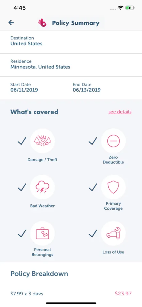 Bonzah allows travelers to purchase Rental Car Damage and Liability Insurances on the go. The Bonzah insurance comes with the following extensive coverage: